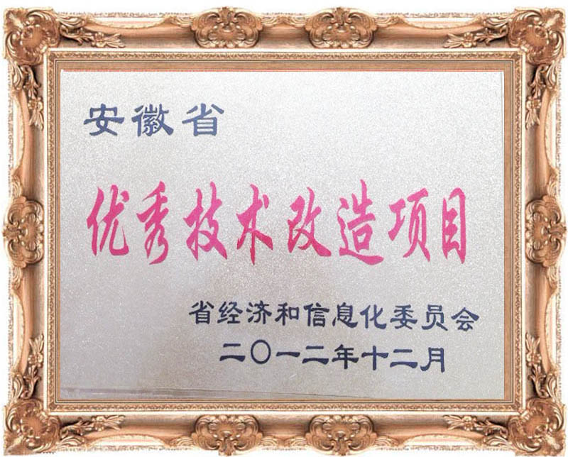 安徽省委,政府為促進我省經濟發(fā)展方式轉變,推動工業(yè)經濟又快又好的發(fā)展為目的,對于在推進技術該著工作中做出貢獻的單位和個人進行表彰,安徽環(huán)瑞憑借年產1200萬米安全型自限溫電熱帶,發(fā)熱電纜技術改造項目,從眾多企業(yè)中脫穎而出,被安徽省經信委授予“優(yōu)秀技術改造項目”也是安徽省同行業(yè)唯一家獲此殊榮,此項榮譽顯示了安徽環(huán)瑞生產規(guī)模已成為省領先,國內先進的電熱帶、發(fā)熱電纜生產基地。