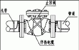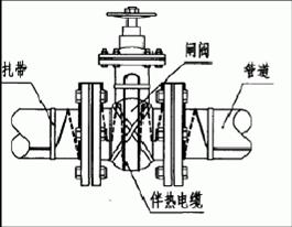5、一切散熱體(如支架、閥門、法蘭等)應(yīng)按設(shè)計圖請求預(yù)留所需電伴熱帶長度,將此段電伴熱帶纏繞于散熱主體上并固定。