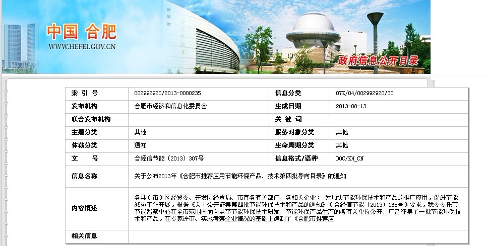 環(huán)瑞作為合肥經(jīng)濟(jì)科學(xué)建設(shè)道路上的重要成員,一直朝著“科技環(huán)瑞,電熱成就世界”的偉大藍(lán)圖邁進(jìn),其具有低電阻過(guò)渡層的自限溫電伴熱產(chǎn)品先后獲得省,市關(guān)于科技成果的榮譽(yù)有:合肥市科學(xué)技術(shù)獎(jiǎng),安徽省高新技術(shù)產(chǎn)品,合肥重點(diǎn)名牌產(chǎn)品。國(guó)家7項(xiàng)專(zhuān)利證書(shū)。其環(huán)保節(jié)能的特點(diǎn)已經(jīng)獲得政府、行業(yè)協(xié)會(huì),及市場(chǎng)的認(rèn)可。目前,環(huán)瑞公司已通過(guò)了合肥市推薦應(yīng)用節(jié)能環(huán)保產(chǎn)品、技術(shù)目錄的公示,獲得了環(huán)保節(jié)能產(chǎn)品稱(chēng)號(hào),以下為合肥經(jīng)濟(jì)和貿(mào)易信息化委員會(huì)網(wǎng)站的公示內(nèi)容: