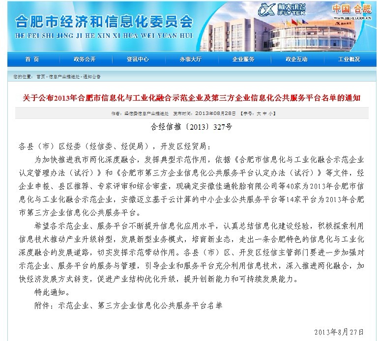 以下為合肥市經(jīng)濟(jì)和信息化委員會網(wǎng)站公示內(nèi)容: