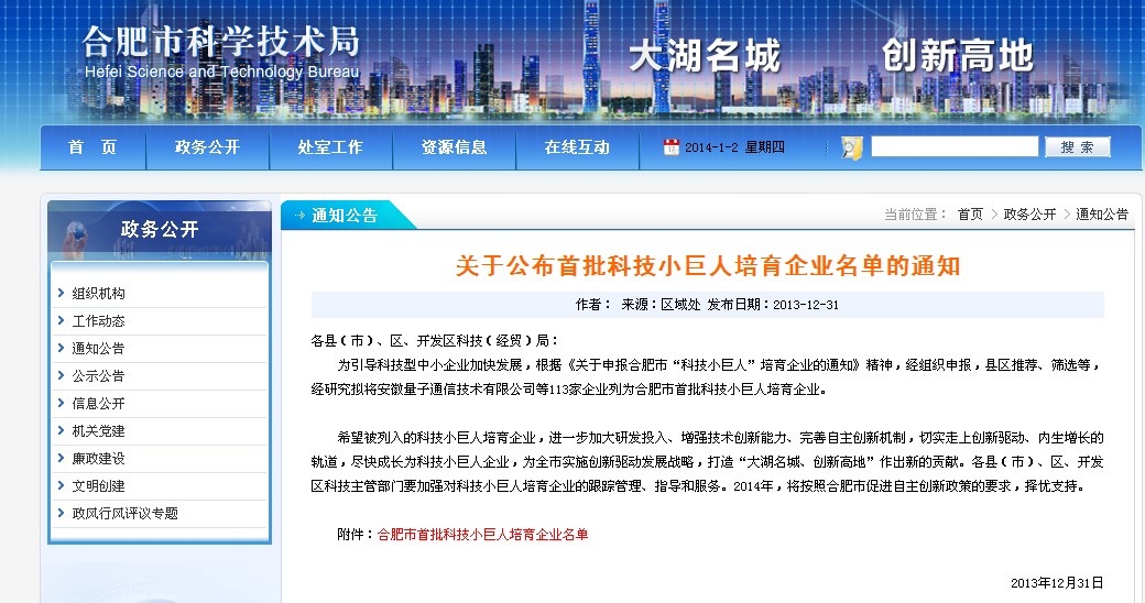 科技小巨人培育企業(yè)是針對(duì)有一定生產(chǎn)規(guī)模與研發(fā)能力,并且取得一定量的科研成果的企業(yè)。企業(yè)入選資格需經(jīng)過經(jīng)組織申報(bào),縣區(qū)推薦、篩選等環(huán)節(jié)。安徽環(huán)瑞憑借多年電伴熱帶、發(fā)熱電纜生產(chǎn)技術(shù)研發(fā)獲得了市政府的重視,入選成功。以下為合肥科技局網(wǎng)通知公司內(nèi)容: