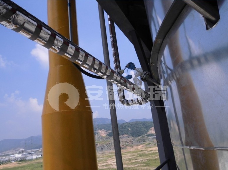 自限溫電伴熱帶可滿足不同伴熱體的安裝需要,實現(xiàn)自動控溫,具有安裝靈活,伴熱迅速等優(yōu)點。此次長潤發(fā)涂料采用安徽環(huán)瑞中溫型自控溫電伴熱帶(它可保證其設(shè)備的維持溫度在40-80℃),MI電纜(維持溫度100℃以上)用于漏斗,管道罐體,法蘭螺栓,儀表等保溫,加熱。