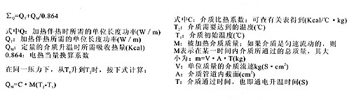 在工程設(shè)計(jì)中有時(shí)會(huì)碰到這樣的情況,要求產(chǎn)品既能伴熱保溫。又能將介質(zhì)開(kāi)始是靜止的或流速較慢,流量較少,且所需升溫的度數(shù)不高時(shí),有時(shí)用電伴熱產(chǎn)品也可以滿足設(shè)計(jì)要求。此時(shí),該電伴熱產(chǎn)品的設(shè)計(jì)功率所產(chǎn)生的熱量按下式計(jì)算: