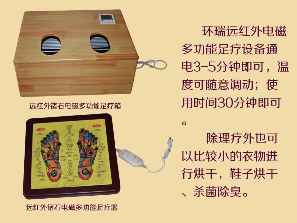 環(huán)瑞遠(yuǎn)紅外鍺石電磁多功能足療器和遠(yuǎn)紅外鍺石電磁多功能足療箱突破了以往足療器采用電動(dòng)脈沖等原理,讓人們足底有震動(dòng)感就能理療的假象。環(huán)瑞暖腳設(shè)備通電后產(chǎn)生17um的遠(yuǎn)紅外光波穿過(guò)人體真皮組織對(duì)足部各個(gè)穴位進(jìn)行效的輻射,促進(jìn)人體的新陳代謝氣血運(yùn)行、調(diào)節(jié)內(nèi)臟功能、舒通全身經(jīng)絡(luò),從而達(dá)到祛病驅(qū)邪、益氣化瘀、滋補(bǔ)元?dú)獾哪康慕?jīng)達(dá)以按摩治療的效果。