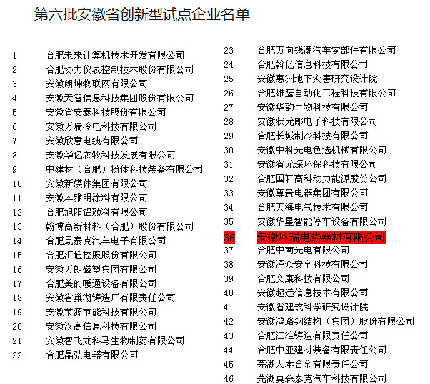 安徽環(huán)瑞榮獲第六批安徽省創(chuàng)新型試點企業(yè)