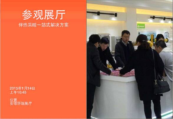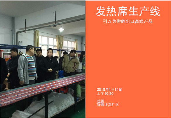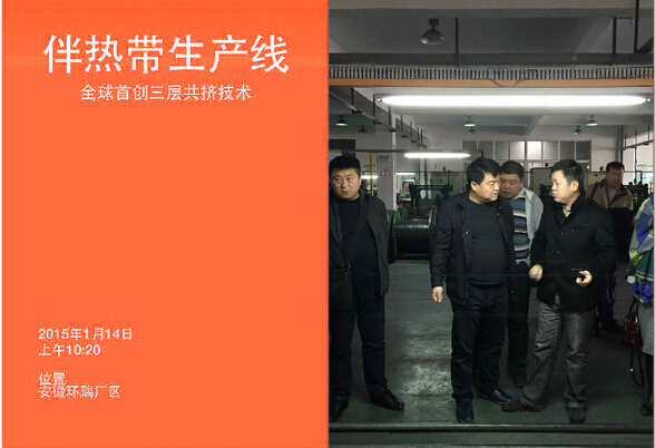 2015年1月14日新年伊始,環(huán)瑞迎來了新疆烏蘇市相關領導蒞臨考察,烏蘇市相關領導在環(huán)瑞董事長計成志陪同下參觀了環(huán)瑞電伴熱帶、發(fā)熱地席和環(huán)瑞現(xiàn)代化展廳,并在環(huán)瑞會議時聽取環(huán)瑞員工對環(huán)瑞未來發(fā)展的相關介紹。