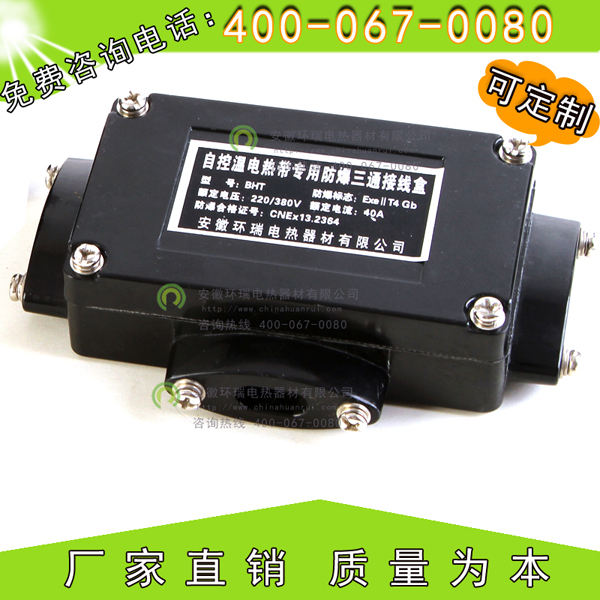 電伴熱帶產(chǎn)品接線盒分為電源接線盒,二通接線盒,三通接線盒及尾端接線盒等。電源接線盒是電伴熱帶與電源線之間起到連接而所使用的,再者就是二通接線盒與三通接線盒,這兩種接線盒在電伴熱系統(tǒng)里統(tǒng)稱(chēng)中間接線盒,是用于電伴熱帶與電伴熱帶之間的連接樞紐,一個(gè)是直通型連接另一個(gè)是岔口型連接而已,而尾端接線盒是作為電伴熱系統(tǒng)中用于密封電伴熱帶尾部的一個(gè)配件。 對(duì)于一些復(fù)雜的管道諸如閥門(mén)等,這些管道較為復(fù)雜,管道的交叉不連續(xù)導(dǎo)致在安裝伴熱帶時(shí)無(wú)法正常連接,因此在這些區(qū)域需要使用二通或三通接線盒進(jìn)行連接。 二通接線盒是滿足電伴熱帶在使用長(zhǎng)度以?xún)?nèi)的連接,讓電伴熱帶的使用變得更為簡(jiǎn)單,一般是采用硅膠來(lái)密封,固定件均為不銹鋼件。對(duì)于用戶在復(fù)雜性區(qū)域內(nèi)使用接線盒時(shí)可以將伴熱帶截?cái)?,在閥門(mén)槽池處用接線盒進(jìn)行連接,具有方便安全的功效,因此電伴熱帶在連接時(shí)必有要使用線盒,它能讓用戶可以放心使用。