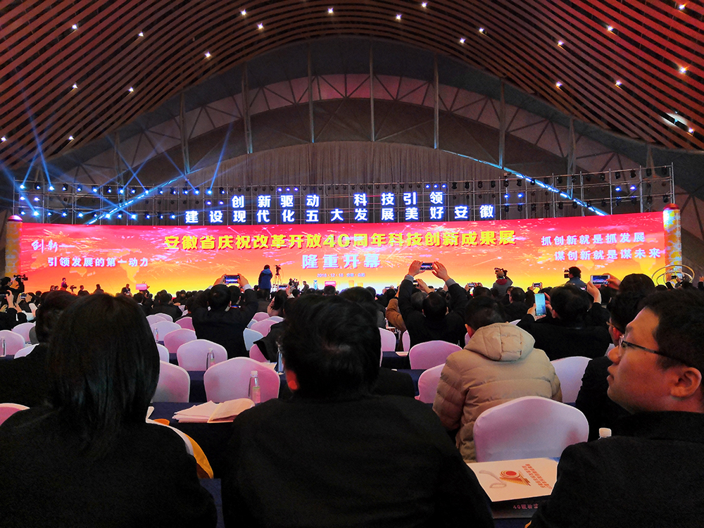 12月18日,安徽省慶祝改革開放40周年科學(xué)創(chuàng)新成果展在合肥濱湖國際會展中心拉開序幕,此次展會以“創(chuàng)新驅(qū)動,科技引領(lǐng),建設(shè)現(xiàn)代化五大發(fā)展美好安徽”為主題,集中展示安徽省改革開放40年來的創(chuàng)新歷程、創(chuàng)新舉措、創(chuàng)新成就。